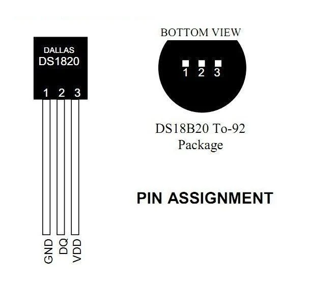 Termometer digital DS18B20 menyediakan pengukuran suhu Celcius 9-bit hingga 12-bit dan memiliki fungsi alarm dengan titik pemicu atas dan bawah yang dapat diprogram pengguna yang tidak mudah menguap. DS18B20 berkomunikasi melalui bus 1-Wire yang menurut definisi hanya membutuhkan satu jalur data (dan ground) untuk komunikasi dengan mikroprosesor pusat. Ini memiliki kisaran suhu pengoperasian -55C hingga +125C dan akurat hingga 0.5C pada kisaran -10C hingga +85C. Selain itu, DS18B20 dapat memperoleh daya langsung dari jalur data ("daya parasit"), menghilangkan kebutuhan akan catu daya eksternal.